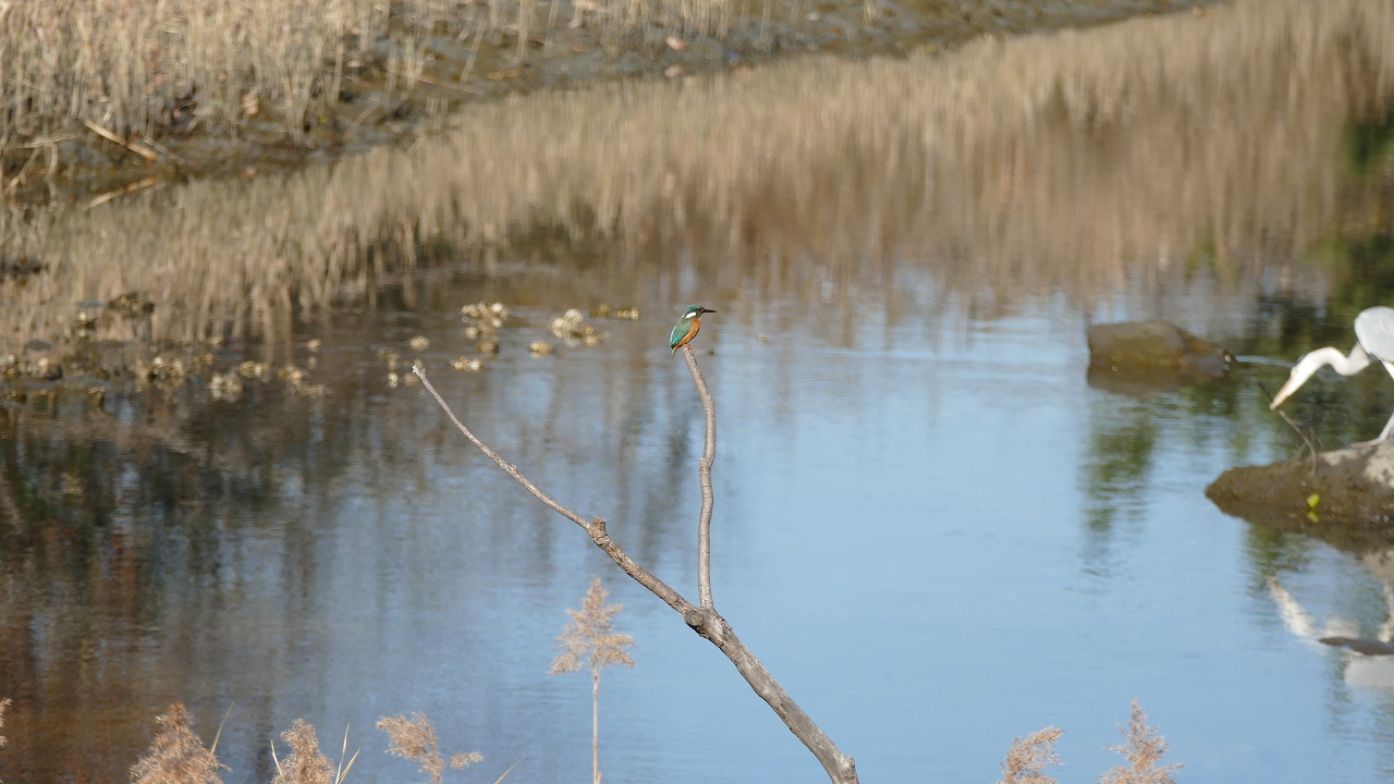 池につながる疎水にカワセミがいました
